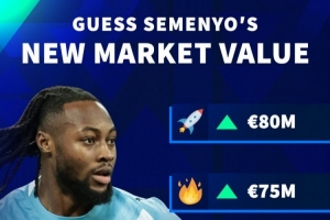 德转预热塞梅尼奥身价变化:最高8000万欧元,最低6000万欧元