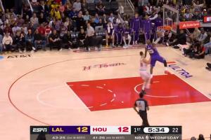 火箭失误被詹姆斯抢断暴扣