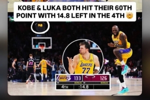 本场比赛,东契奇爆砍60分,而上一位得到60分的湖人球员,还是2016年退役战的科比。