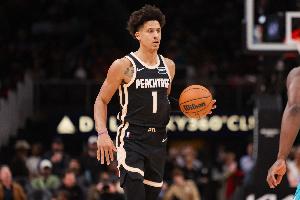 比赛进行到首节,老鹰官方宣布,杰伦·约翰逊左髋部屈肌受伤,将退出本场比赛。